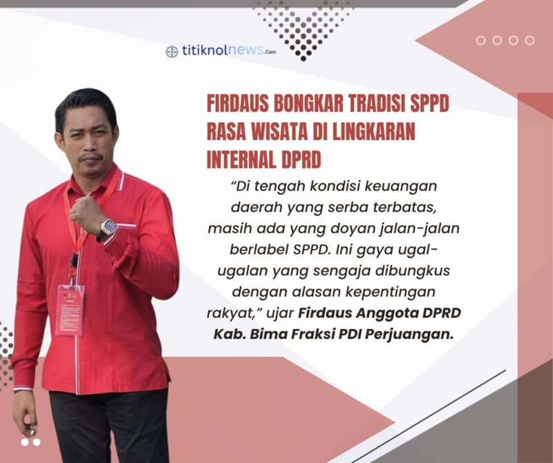 Kabupaten Bima, Titiknolnews.com — Anggota DPRD Kabupaten Bima dari Fraksi PDI Perjuangan, Firdaus, melontarkan kritik tajam kepada rekan-rekannya di lembaga legislatif terkait penggunaan anggaran perjalanan dinas, Selasa (3/2/2026). Sebagaimana di kutip dari media Kahaba.net